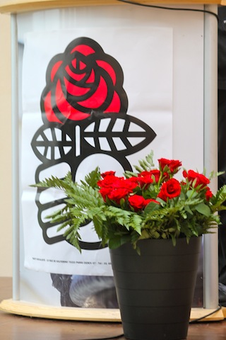 C’est dans la commune de Martine David, maire de saint-Priest, que s’est tenue l’édition 2010 de la Fête de la Rose. « En 2012, on la fera à l’Elysée » entend-on déjà dans l’assistance, alors que Jacky Darne, président de la fédération du Rhône, vérifie les micros à la tribune. Un peu plus tôt dans la matinée, Gérard Collomb, Jean-Jack Queyranne, Bertrand Delanoë, Jacky Darne, Martine David et Annie Guillemot se sont pliés à la traditionnelle conférence de presse sur la régression territoriale. Ils ont rappelé que les « collectivités locales assurent près de 75% des investissements public » avec une « dette dix fois moins importante que celle de l’Etat », craignant une « recentralisation » déguisée. Sur le mode de scrutin à un tour, ils dénoncent « une manipulation électorale destinée à avantager la droite. » Le rôle du conseiller territorial, siégeant à la fois au conseil régional et général « organise la confusion des rôles et le cumul des mandats », selon ces derniers. Dehors, on prépare déjà les stands : les Jeunesses Socialistes, la Ligue des Droits de l’Homme, Osez le féminisme ou encore le comité de soutien d’Hervé Ghesquière et Stéphane Taponier, les deux journalistes retenus en Afghanistan.