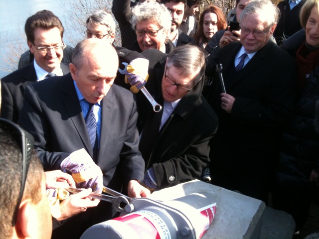 Gérard Collomb et les autres acteurs du projet vissaient les premiers boulons vendredi matin.