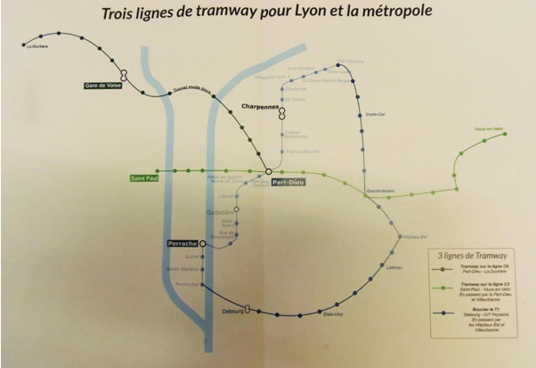 A la place, le gonflement du budget du Sytral abondé par une hausse de l’apport des collectivités locales à hauteur de 100 millions par an (Lyon + métropole) permettra de financer la construction de trois lignes de tramway. Le premier remplacera la ligne C6 entre la Duchère et la Part-Dieu, le second remplacera la fameuse ligne C3 et ses 55 000 voyageurs par jour, et le troisième partira de la fin de l’actuel T1 (Montrochet) pour retrouver ce même T1 au nord (IUT Feyssine).