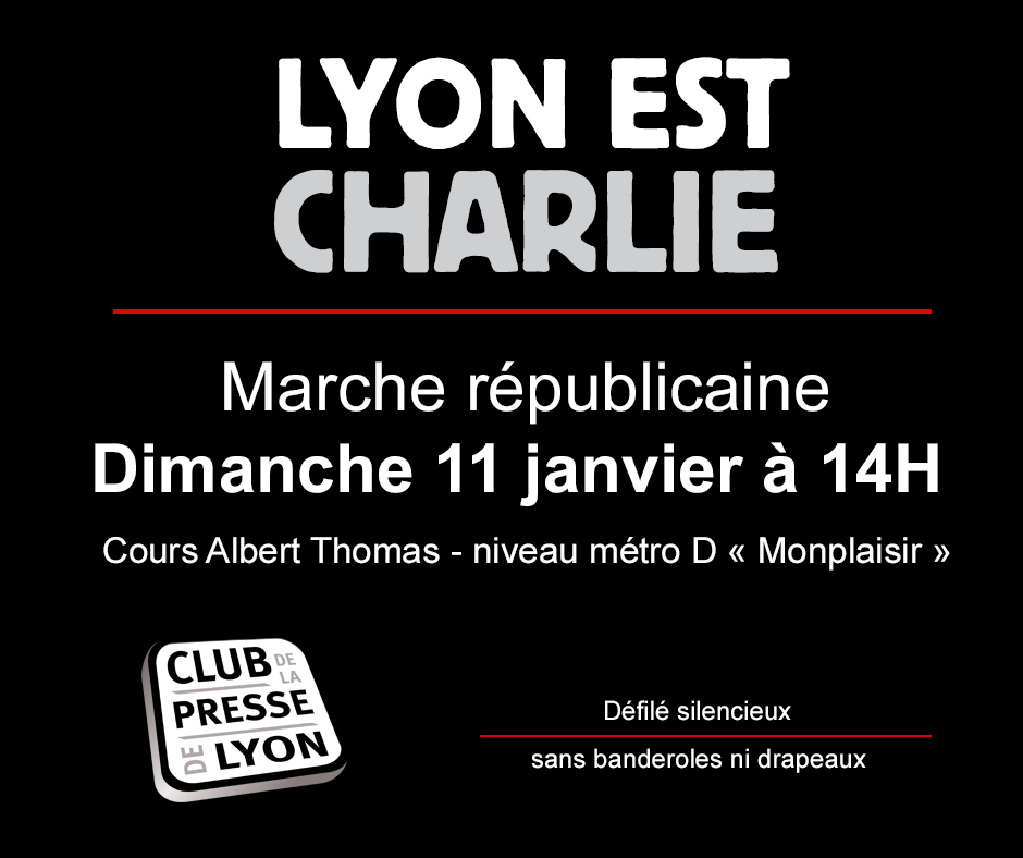 Le rendez-vous "Lyon est Charlie" est donné dimanche à 14h cours Albert