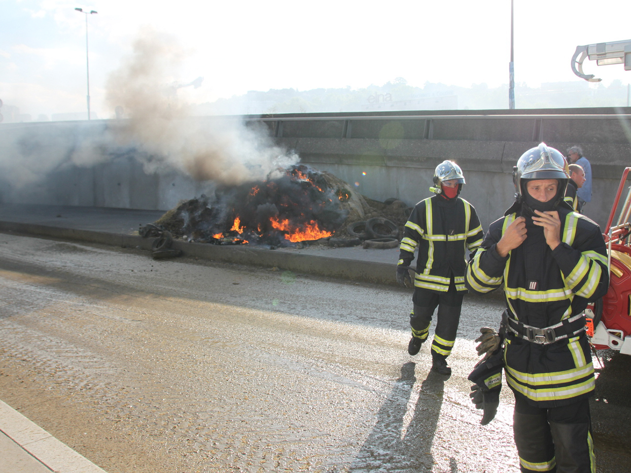 En partant, les éleveurs ont mis le feu à de la paille et des pneus - LyonMag