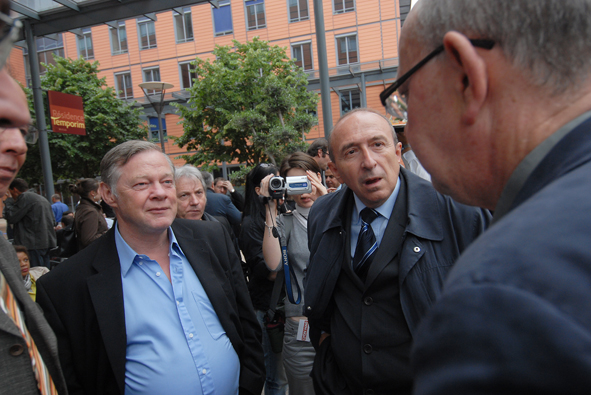 Le maire de Lyon Gérard Collomb, en pleine discussion avec son adjoint Gilles Buna et Jean-François Kahn.