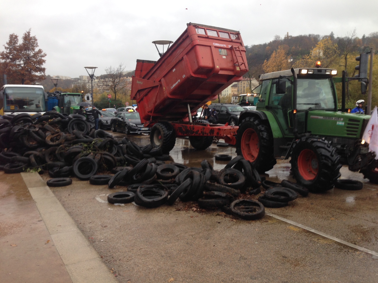 Signaler Répondre"Les manifestants ont notamment déversé des dizaines de pneus sur la chaussée pour récupérer les aides européennes que certains n'ont toujours pas reçu au titre de 2015 et de 2016"