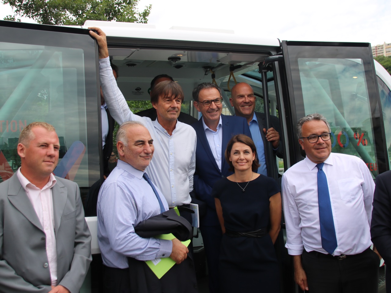 Chargé de la Transition écologique et solidaire au sein du gouvernement, l'ancien animateur TV visitait le quartier de la Confluence et s'offrait une virée en Navly, la navette électrique sans chauffeur.