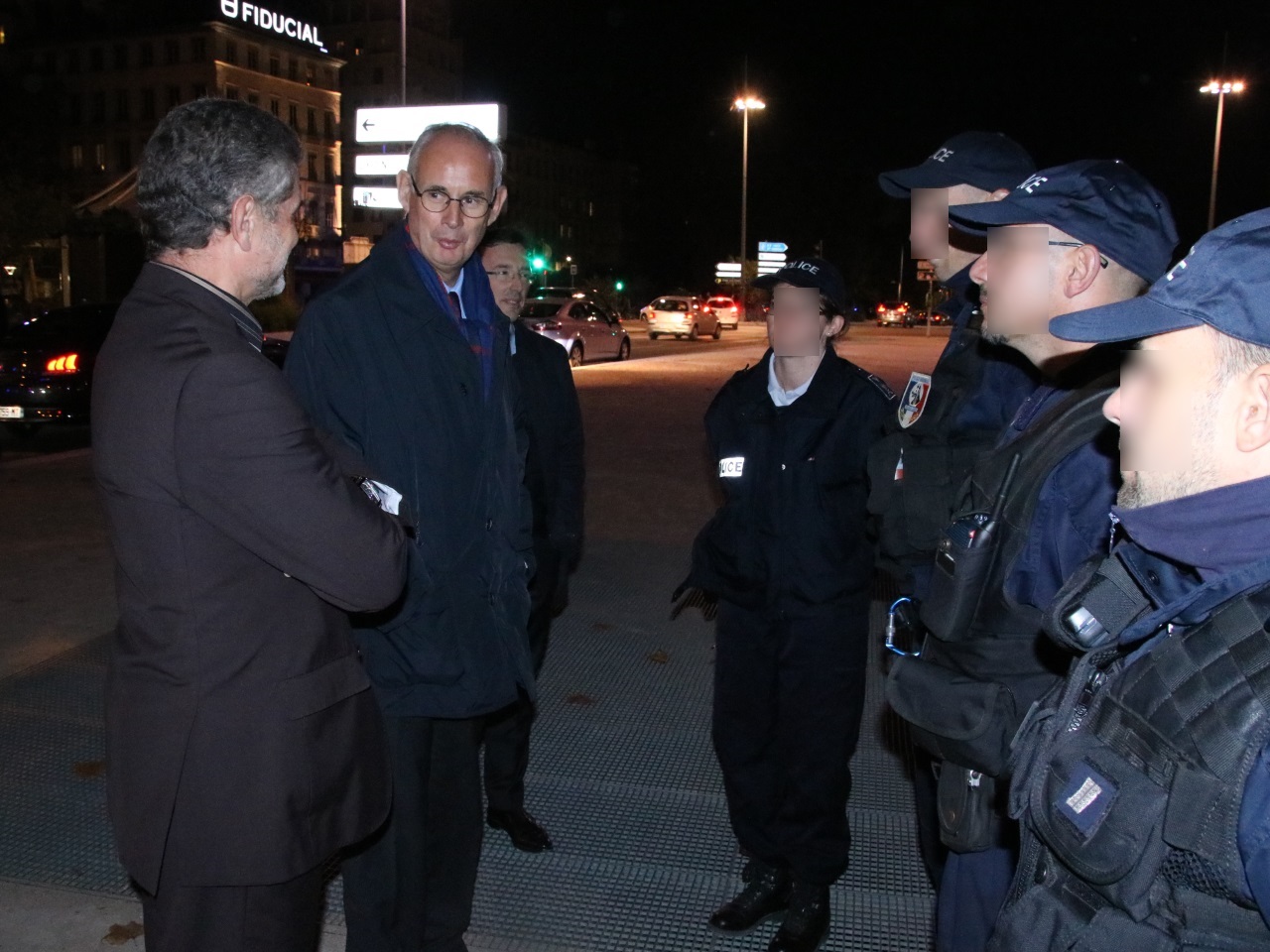 Stéphane Bouillon a ensuite pris la direction de la Guillotière et des Berges du Rhône pour à nouveau saluer les policiers sur le terrain. Enfin, il est monté dans une voiture de la Bac pour réaliser une patrouille avec les fonctionnaires.