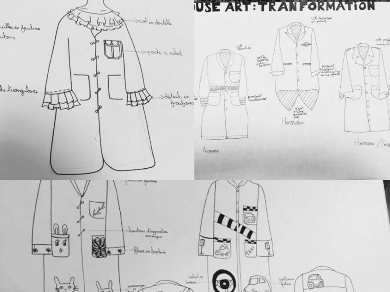 Depuis plusieurs semaines maintenant, l’atelier d’art La Petite Académie et les élèves du Bac Pro « métiers de la mode » SEPR sont mobilisés pour faire de ces blouses blanches « parfois associées aux mauvaises nouvelles » des vêtements colorés, agréables à regarder et à porter.