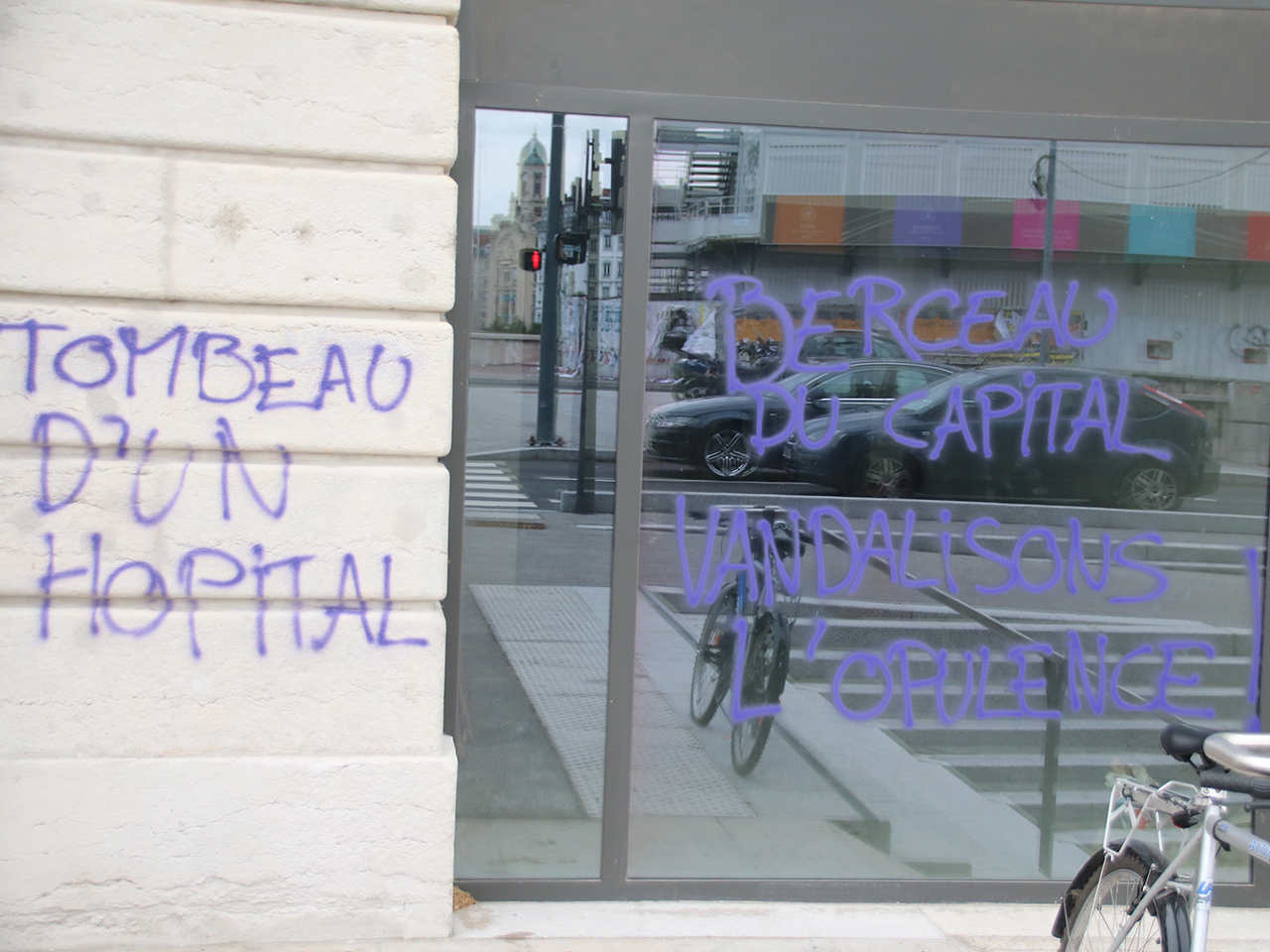 Avant cela, plusieurs casseurs s’en sont pris au Grand Hôtel-Dieu, rouvert aux Lyonnais vendredi dernier. Des tags ont été réalisés sur la façade du bâtiment. "Tombeau d’un hôpital, berceau du capital. Vandalisons l’opulence !", disait l’une des inscriptions. Là encore, rien à voir en terme d'intensité avec le saccage d'un McDonald's à Paris par des militants anarchistes.