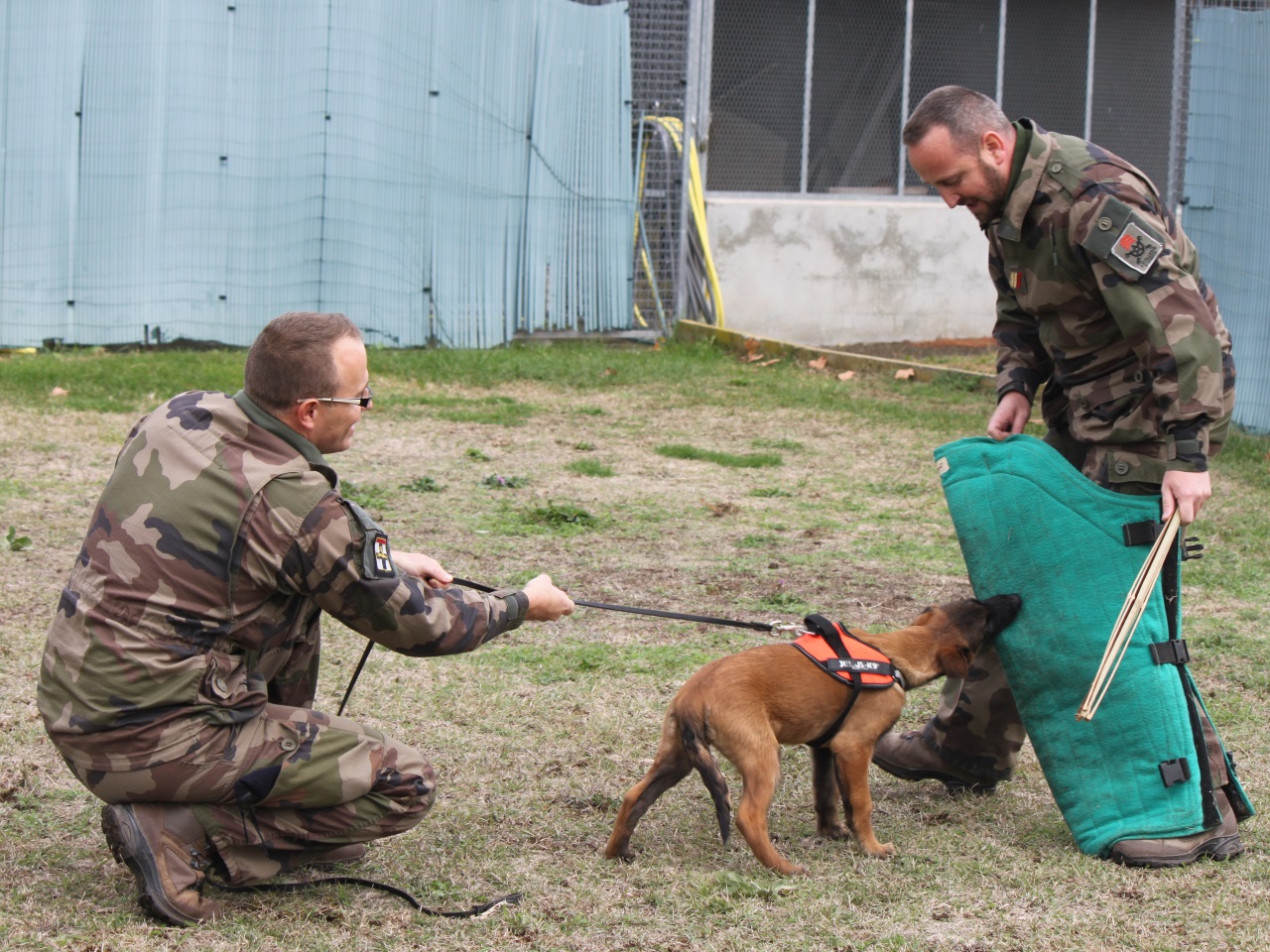 Puis viendra la phase de dressage : "On va débuter ce qu'on appelle le débourrage au mordant. Ça passe par le jeu. On commence par du tissu, puis on le roule en forme de boudin. On passera après à une jambière ou une manchette, puis à un uniforme porté. Le but, c'est de donner les capacités au chien d'avoir le courage de mordre un individu, d'intervenir si je lui donne un ordre, si la situation l'exige, ou d'instinct, si je me fais agresser".
