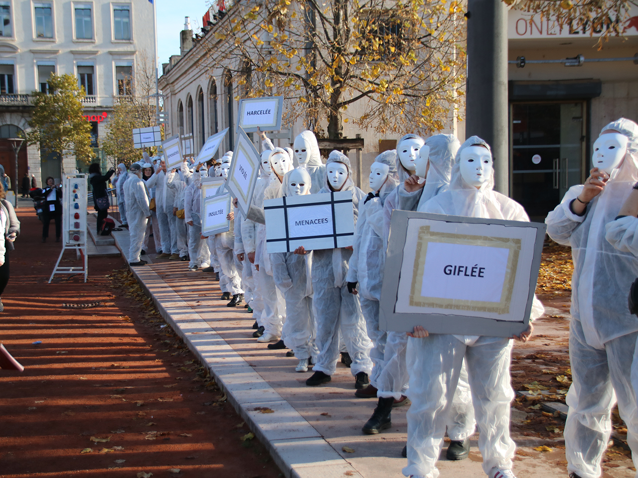 Elles ne veulent plus être giflées, menacées, violées, harcelées ou encore insultées. Ce samedi, 3 000 personnes sont parties, visages masqués, de la place Bellecour, pour dire stop aux violences faites aux femmes.