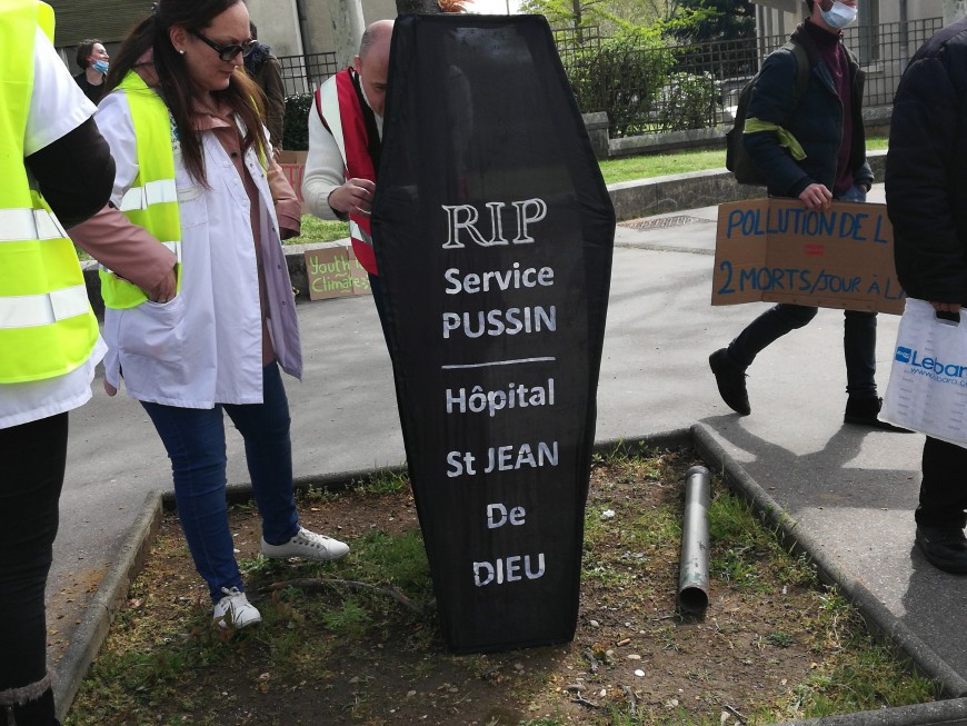 "On est là pour dénoncer la politique d’austérité et les coûts budgétaires au sein des établissements de santé de l’hôpital", explique Linda, infirmière et déléguée syndicale CFTC. Ce vendredi, entre 150 et 200 personnes étaient présentes devant l’hôpital Édouard-Herriot pour manifester alors qu’Agnès Buzyn, ministre des Solidarités et de la Santé, était chargée d’inaugurer le pavillon H, qui a ouvert ses portes en novembre dernier.