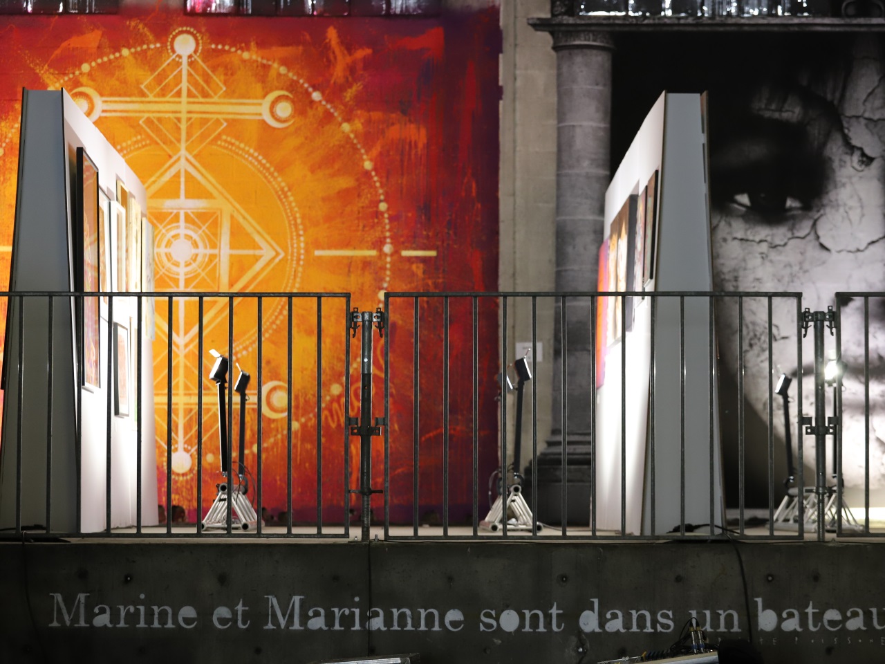 Dès le franchissement des portes de la Halle Debourg abandonné, le regard des visiteurs se dirige vers le haut. Les murs sont recouverts dans leur totalité d'immenses œuvres des 68 artistes venus de tous les continents.