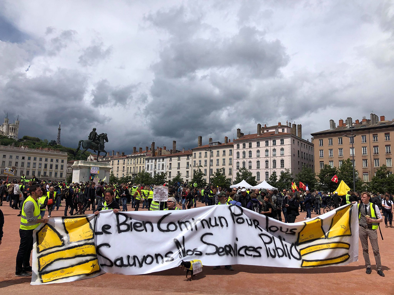 Dans le cortège des gilets jaunes, le leader Jérôme Rodrigues avait fait le déplacement et a nié l’essouflement du mouvement. A Lyon pourtant, les derniers actes rassemblaient avec peine les 500 participants.