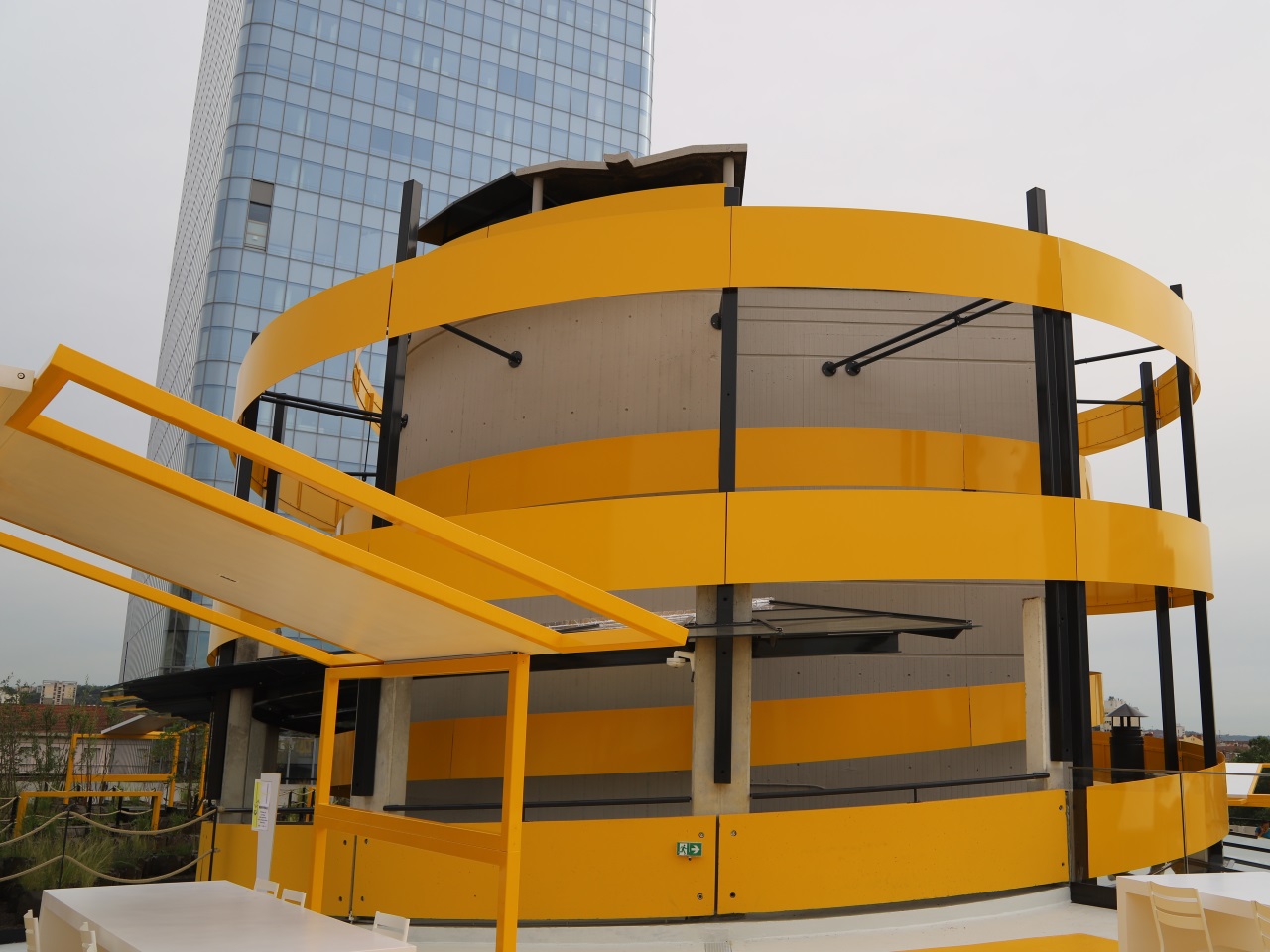 Il faut gravir sept gros étages (en ascenseur) pour rejoindre le rooftop de 1 800 m² et ainsi profiter de la vue sur le quartier d'affaire de La Part-Dieu. Pour les plus courageux qui auront utilisé les marches pour monter, un bar à fruit "Fruisy" vous proposera des rafraichissements detoxs, de 4,90 euros jusqu'à 14 euros le litre.
