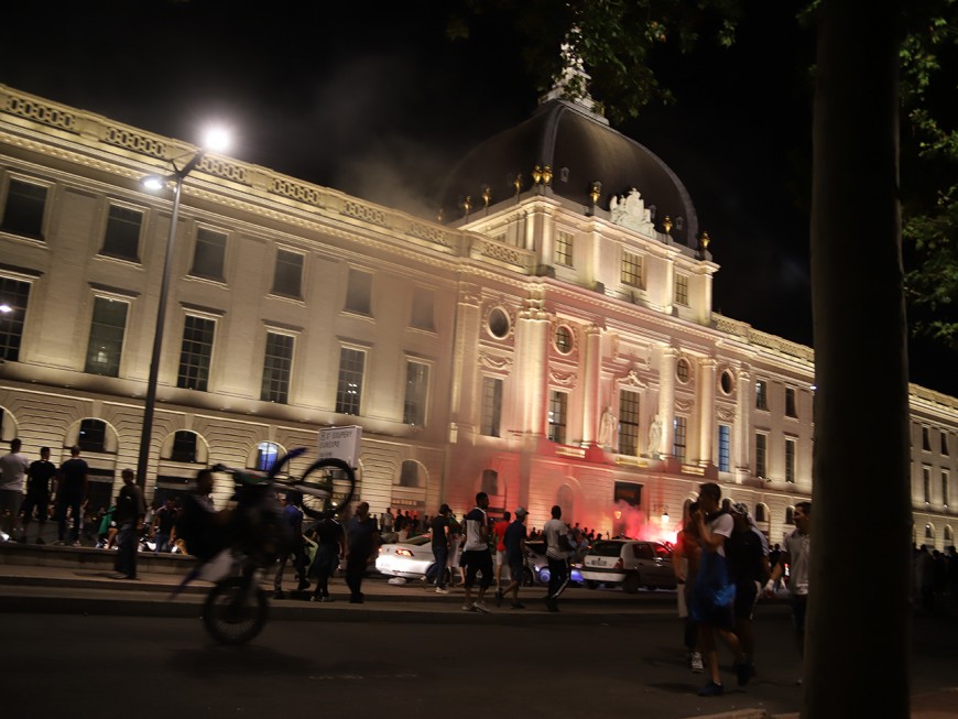 23h45 : Si le gros des supporters de la Guillotière est contenu, d'autres fans de l'Algérie sont passés par d'autres axes pour brandir leurs drapeaux le long du Grand Hôtel-Dieu.