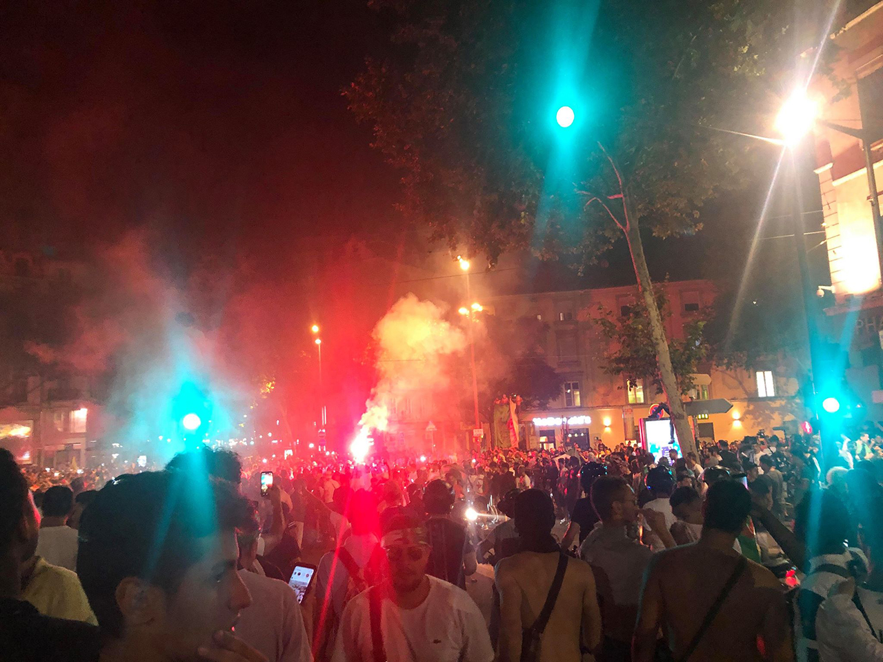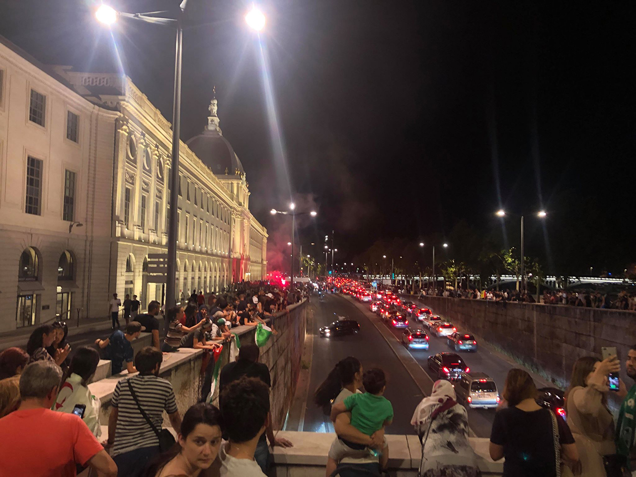 23h10 : Des milliers de supporters de l’Algérie paradent dans les rues de Lyon. L’ambiance oscille entre le bon enfant et l'électrique, cela dépend des groupes. Les forces de l’ordre encadrent de loin les cortèges sur les quais du Rhône.