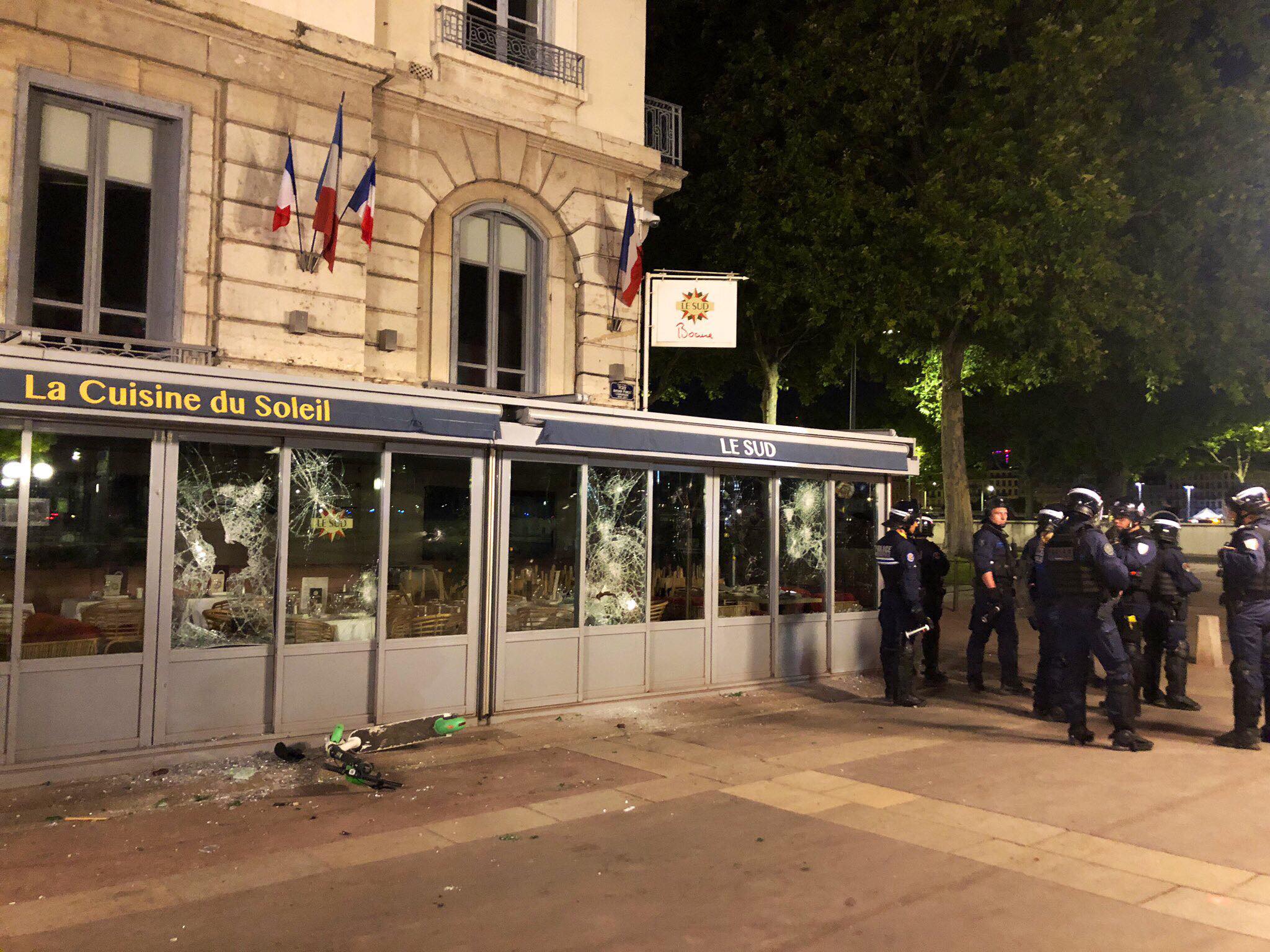 Trois commerces ont été dégradés mais aucun autre pillage ne serait à signaler, excepté celui du magasin de vélo près de la Guillotière.