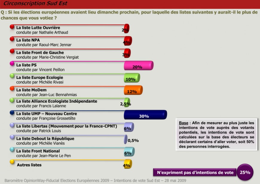 Selon un baromètre Opinion Way-Fiducial, l’UMP obtient 30% d’intentions de votes dans le Grand Sud-Est.