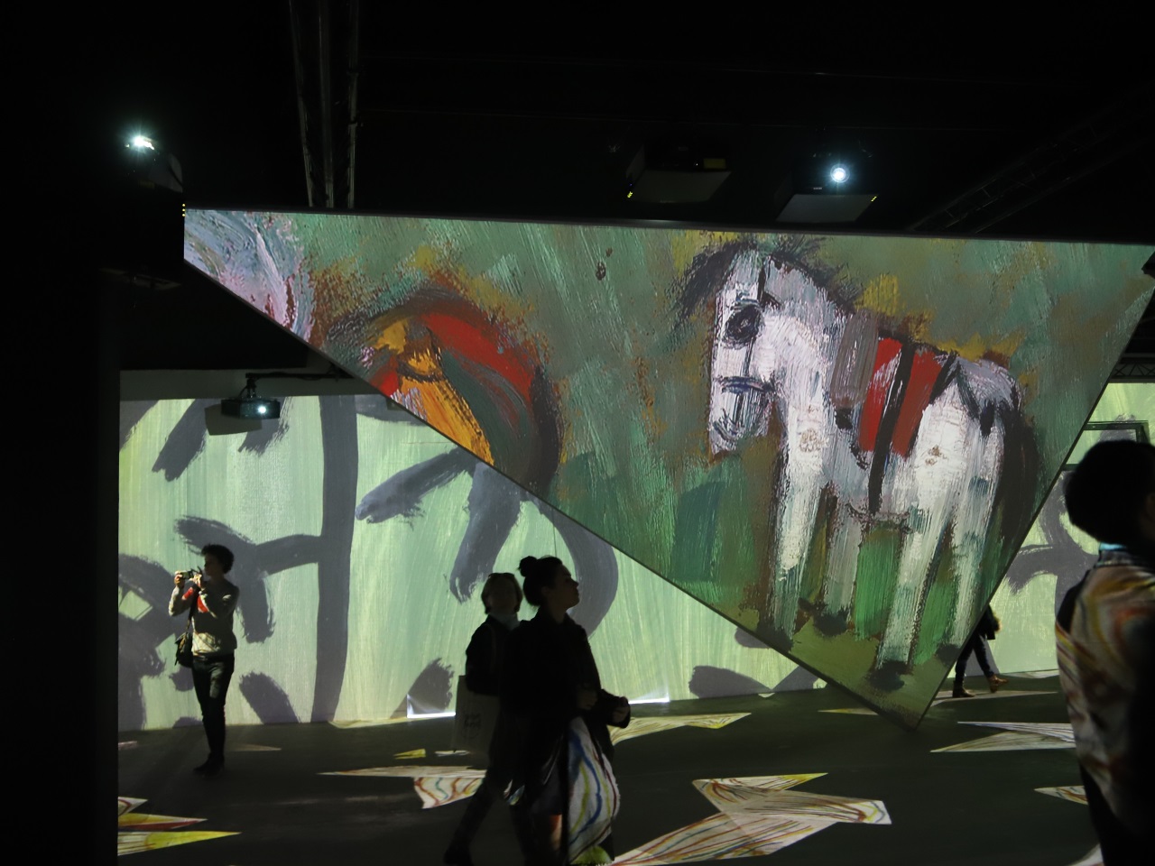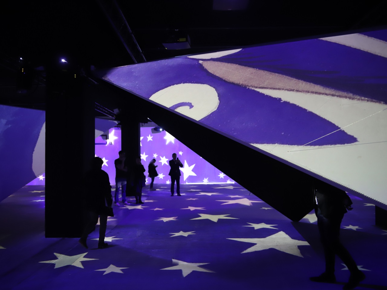 Dans les salles exiguës de la Sucrière à Lyon, les tableaux majeurs du peintre espagnol sont projetés en musique au sol, sur les murs, sur des origamis imaginés le fantasque architecte Rudy Ricciotti. "Il fallait une technologie de haut vol, on a installé 70 vidéoprojecteurs HD synchronisés", détaille Julien Baron.