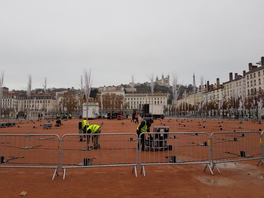 La prairie éphémère prévue sur la place Bellecour était en cours d’installation ce lundi matin. Les passants ont notamment l’occasion d’apercevoir les pampas qui illumineront les lieux. Des créatures volantes viendront compléter l’œuvre produite par le collectif TILT et l’équipe Porté par le vent.