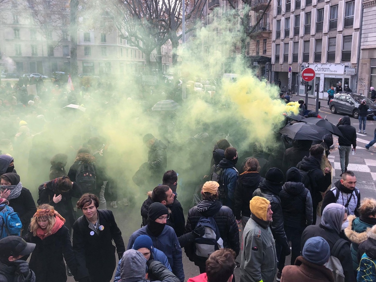 #GreveGenerale à Lyon. Des dizaines de milliers de personnes qui défilent. Des échauffourées avec les forces de l'ordre ce jeudi 5 décembre pic.twitter.com/BOCIhc0f4E