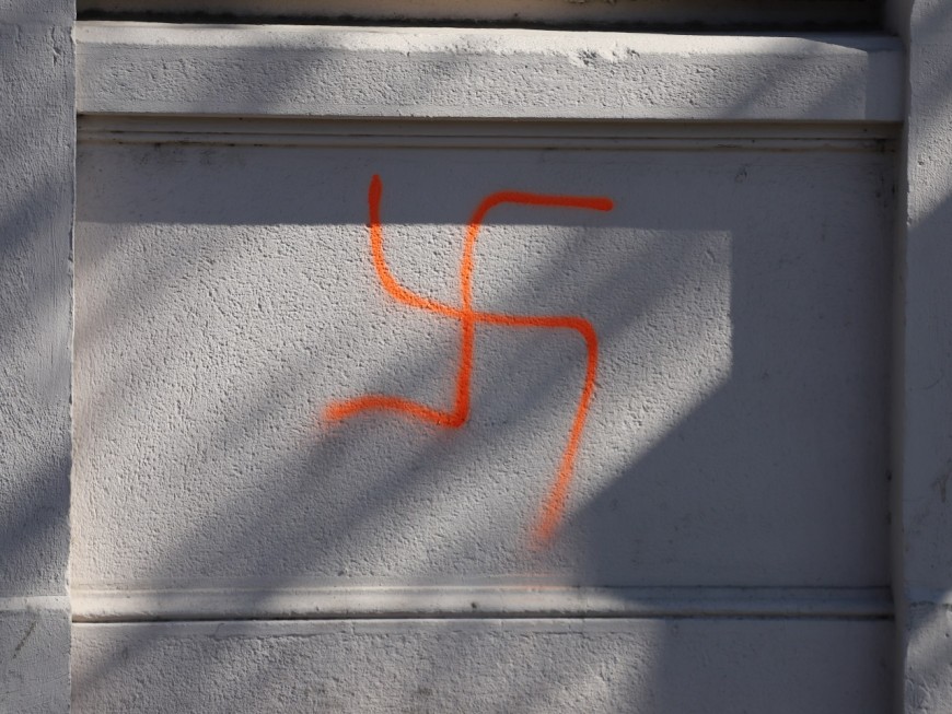 Le virage sud tague la svastika. Le virage tague wesh-wesh ?