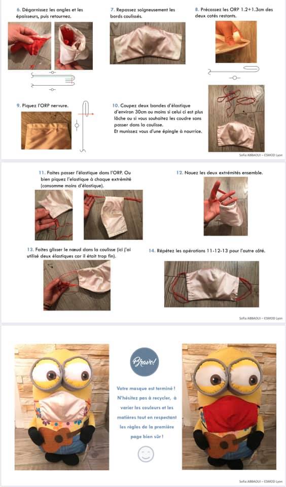 Alain Boix, directeur de l’école, a partagé sur les réseaux sociaux un tutoriel en photos imaginé par la professeur de modélisme Sofia Aifos. En quatorze étapes, il est donc possible de s’occuper les mains à la maison (et pourquoi pas de faire participer les enfants) et de fabriquer des masques conseillés pour les sorties, notamment pour faire les courses ou aller travailler, pour se protéger et protéger les autres de la propagation du coronavirus.