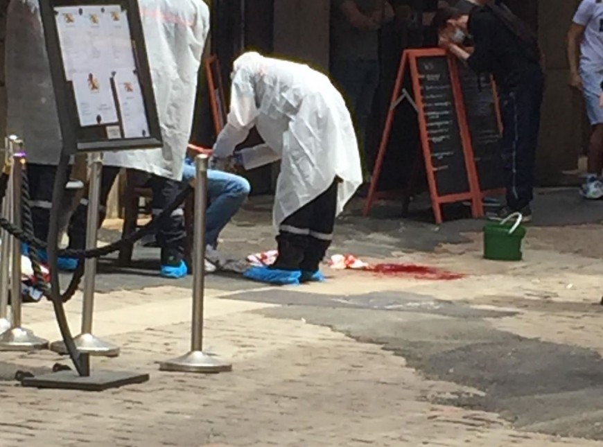 Article initial : Selon des témoins de la scène, des hurlements ont été échangés pendant près d’une heure. Avant que l’un des protagonistes n'utilise un couteau pour poignarder son opposant au niveau de la gorge. Les faits se sont déroulés devant l'un des nombreux restaurants de la place du Vieux Lyon dans le 5e arrondissement. Une flaque de sang gisait sur le bitume. L’agresseur a ensuite pris la fuite et s’est retranché à son domicile, situé au 3e étage d’un immeuble voisin.