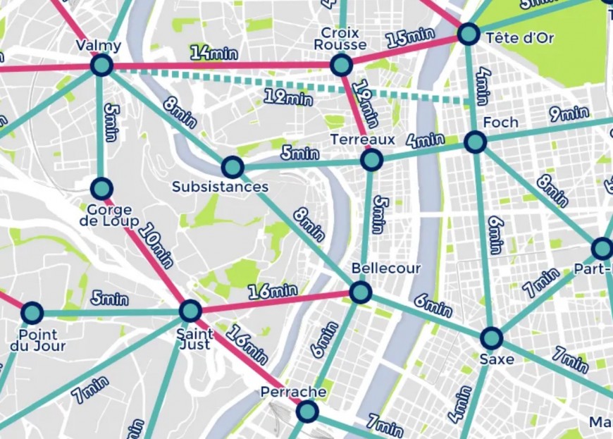 "La Ville à Vélo a publié des cartes de déplacement qui prouvent selon l’association lyonnaise que "le vélo est le mode le plus rapide pour circuler au sein de la Métropole" de Lyon."