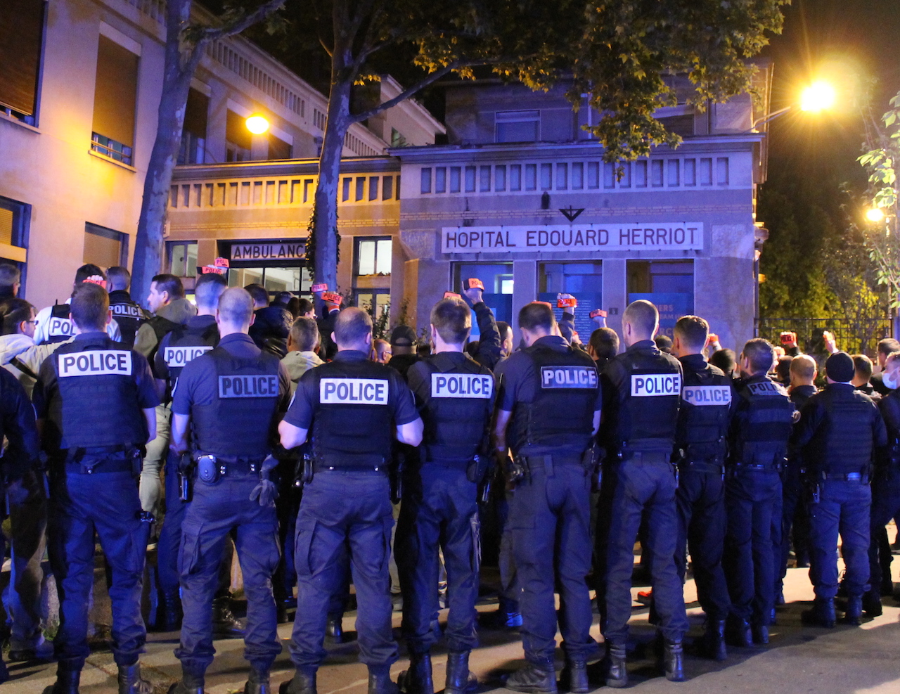Jeudi soir, dès minuit, de nombreux équipages de policiers se sont retrouvés pour une nouvelle manifestation à Lyon. Cette fois, les fonctionnaires s’étaient donnés rendez-vous devant l’hôpital Edouard Herriot , dans le 8e arrondissement. Les "nuiteux", venus de toute l’agglomération, sont allés jusqu’aux portes des urgences pour applaudir chaleureusement ceux qui étaient aussi en première ligne face au Covid-19.