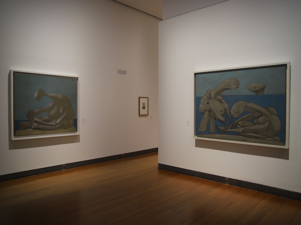 Si les premières baigneuses de Picasso avaient comme fond la forêt, elles n’ont trouvé la plage que quelques années plus tard en 1918 lors du mariage du peintre avec Olga Khokhlova, avant de se métamorphoser dès 1927 à l’occasion de la rencontre avec sa future amante Marie-Thérèse Walter, puis de se transformer plus tard en baigneuses de pierre ou encore de guerre et enfin en baigneurs.