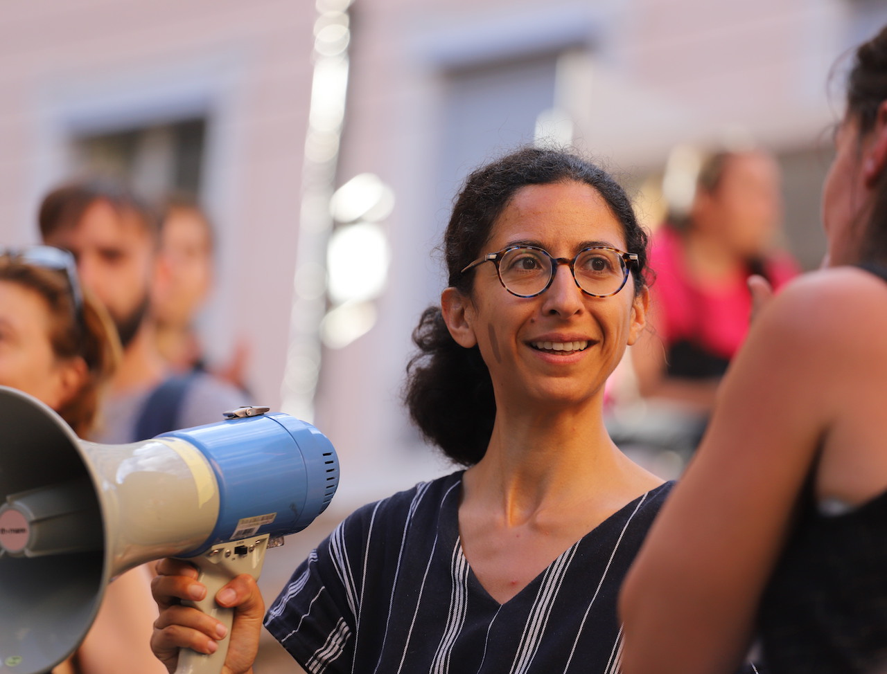 Derrière son mégaphone, Yasmine Bouagga se dit "intimidée de commencer de cette manière". "On a fait campagne sur l’enjeu de la nuit apaisée, on a à coeur d’agir. Il ne faut pas que les activités nocturnes soient interdites mais elles doivent être régulées", lança-t-elle d'une voix timide, inaudible même pour ceux qui se trouvent en bas des marches, avant d’énumérer quelques pistes à son audience : piétonniser des voies, instaurer davantage de zones à circulation réduite, penser à des radars bruit contre les véhicules bruyants…