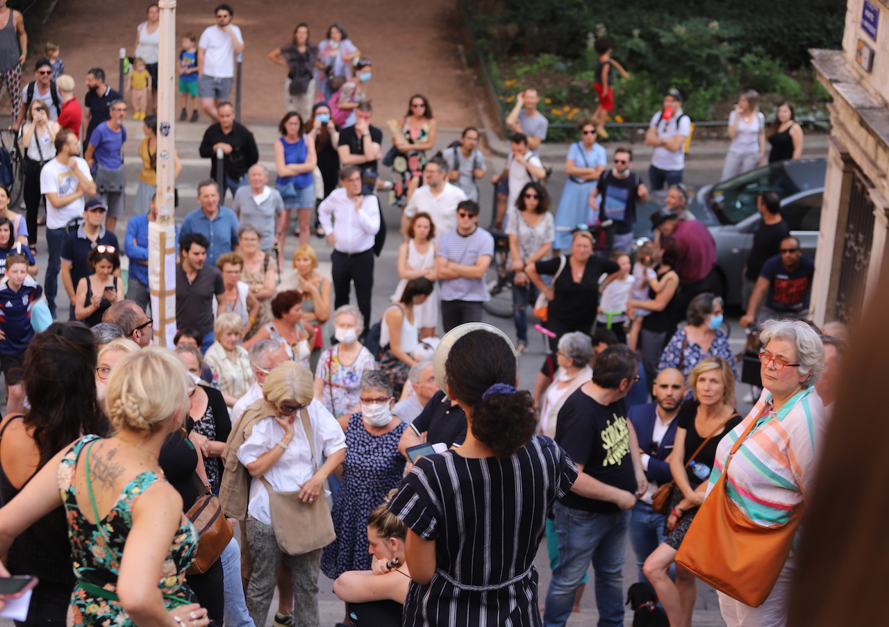 "Madame la maire est là pour nous parler", annonça une membre du collectif. "Ah, bah ça change !", hurla un habitant du 1er, un tacle glissé à Nathalie Perrin-Gilbert, qui fut maire depuis 2001, et qui sera désormais l'adjointe à la Culture de Grégory Doucet à la mairie centrale.