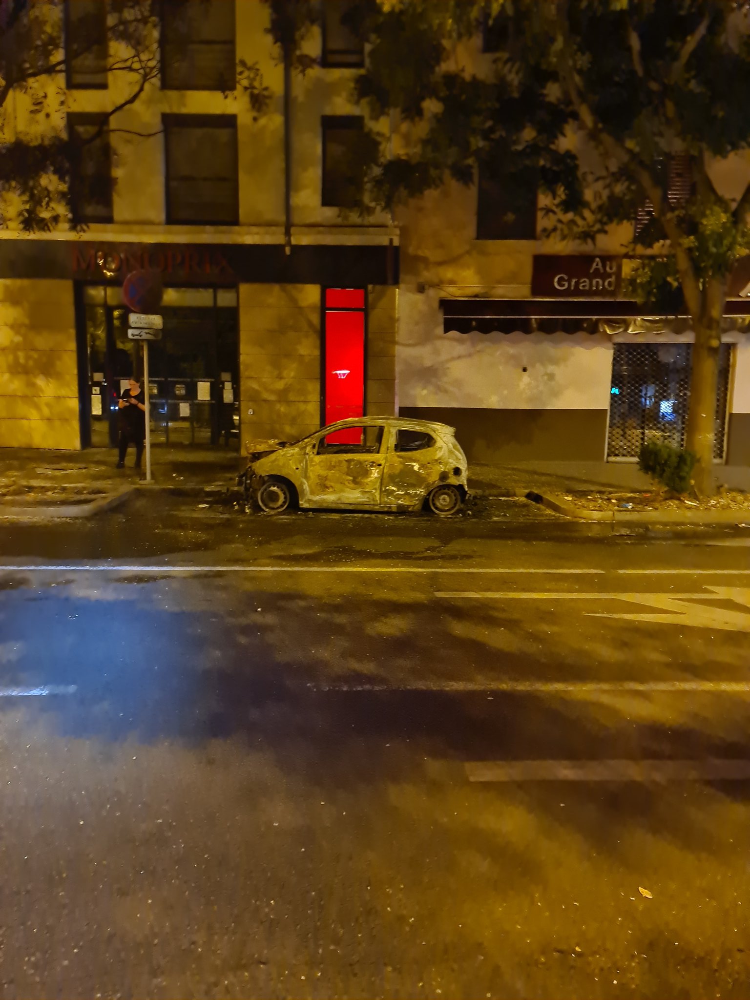 Et comme la nuit de lundi à mardi, de nombreux incendies volontaires se sont de nouveau déroulés. Déjà, vers 23h dans le quartier du Tonkin à Villeurbanne, plusieurs voitures ont été incendiées tout comme à la Duchère et Vaise dans le 9e arrondissement, ou encore à Bron. Sur cette dernière commune, des émeutiers n’ont pas hésité à caillasser et charger les policiers qui ont répondu avec du gaz lacrymogène. Des moyens de dispertion ont aussi été utilisés par les forces de l'ordre dans le quartier Gorge de Loup, notamment rue Marietton, là encore dans le 9e. Selon nos informations, le poste de la police municipale, situé sur l'artère, a été la cible de jets de projectiles, des impacts sont visibles sur les vitres. Des tensions étaient toujours en cours vers 1h30 du matin non loin, au niveau de la place Valmy.
