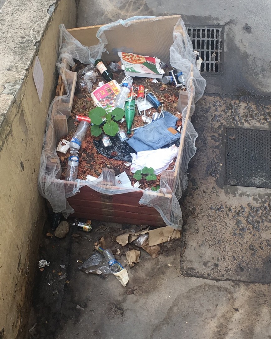D’après le collectif La Guillotière en colère !, qui alerte sur les incivilités grandissantes dans le quartier, dès le 5 juillet, des déchets ont été jetés dans le bac initialement destiné à être travaillé en potager. Les détritus et autres encombrants se sont faits de plus en plus nombreux les jours suivants.