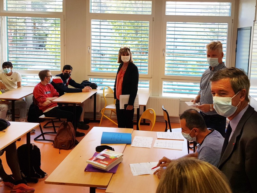 Dans les couloirs du bien entretenu lycée Edouard Branly, vieux de cinquante ans mais rénové il y a une dizaine d’années et offrant aux élèves et étudiants des options aux intitulés obscures (STI2D – EE ou SIN par exemple) des ateliers d’électrique et de systèmes numériques, un internat avec 200 places dont certaines inoccupées, deux selfs qui - Covid oblige - ont vu leur horaire augmenter pour atteindre l’amplitude de 11h à 13h45 pour permettre aux élèves de moins se croiser, Olivier Dugrip s’est surtout félicité de la bonne ambiance générale, du port du masque à 100% (en tout cas chez les élèves) autant de signes d’une rentrée réussie. Dominique Fazeli n’allait pas dire le contraire, reconnaissant avec satisfaction que son administration et les services du rectorat avaient fort bien travaillés ensemble.