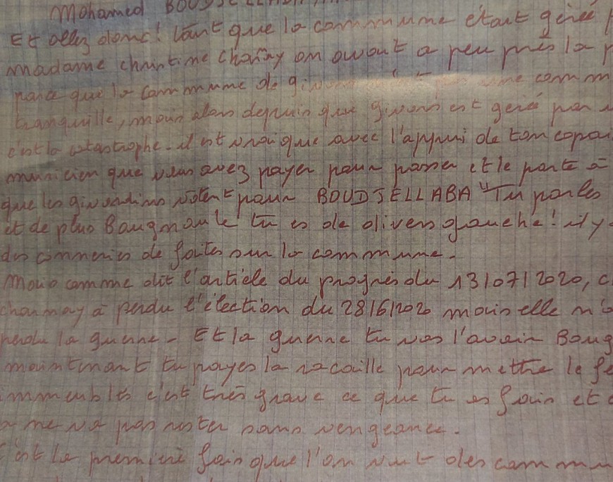 L'enquête a montré que le corbeau avait envoyé d'autres lettres. Dont une à une Givordine, le 24 août dernier.