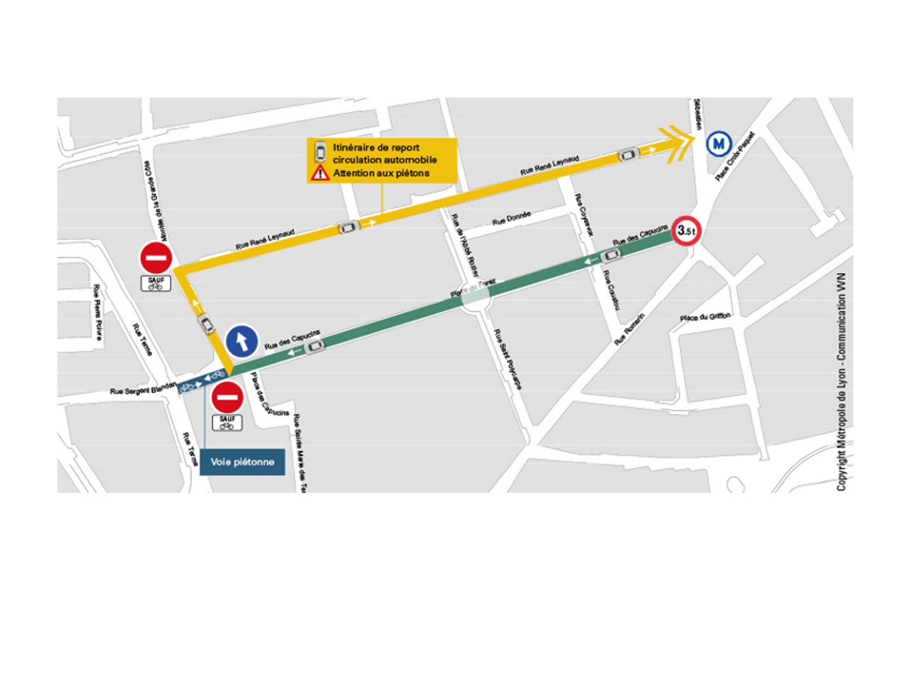 Il s'agit du segment allant de la rue des Capucins à la rue Terme. Cette interdiction, décidée conjointement par la mairie du 1e arrondissement et la Métropole, a pour objectif "d'apaiser la circulation de la rue des Capucins".