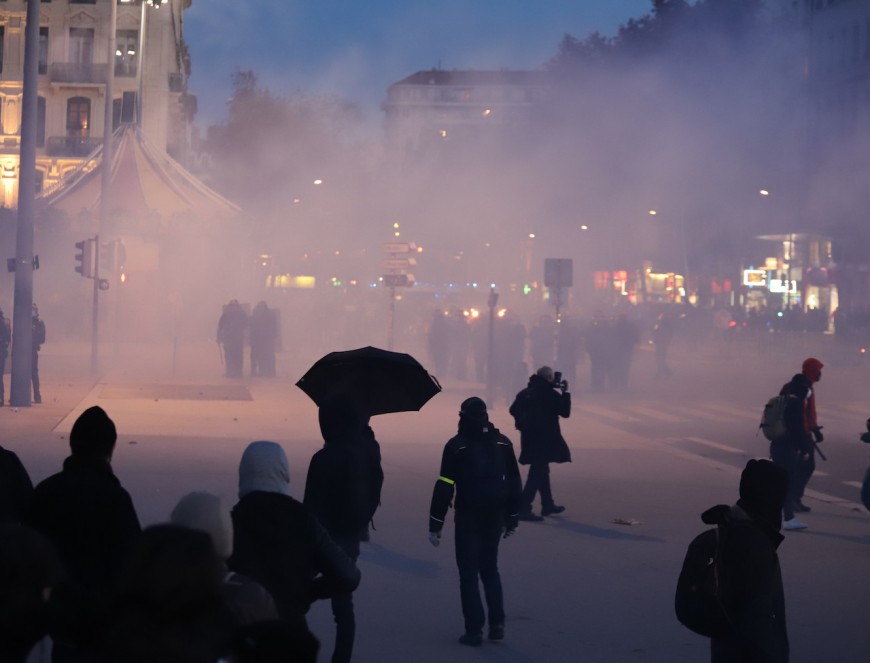 Le cortège s'est alors séparé en trois groupes. Comme la semaine dernière, les affrontements ont lieu au niveau du pont de la Guillotière. Certains ont même quitté le cortège à causes des nombreux fumigènes et gaz lacrymogènes. Selon nos informations, contrairement à la semaine dernière, les silos à verre ont bien été vidés.