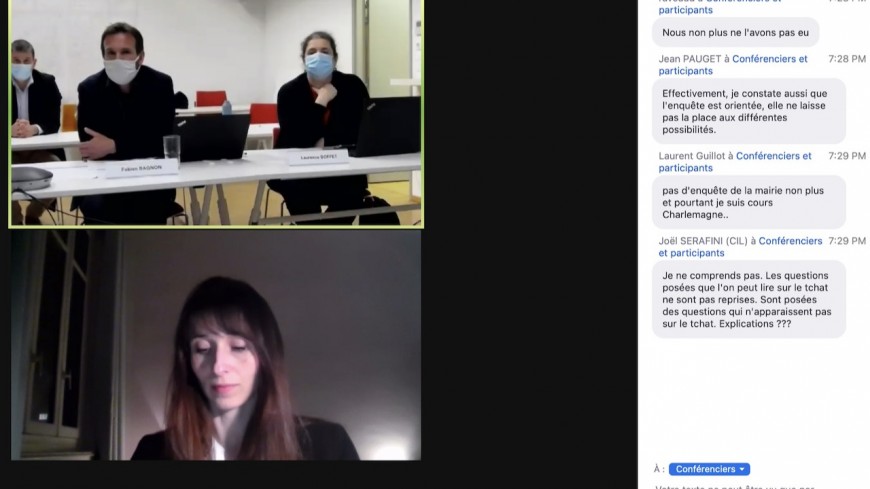 Dans le tchat, la colère montait. "Si c’est pour ne pas répondre aux questions préoccupantes, à quoi cela sert d’organiser une visioconférence?", se demandait un participant. "Franchement pourquoi on répond à des questions sur Uber et des poubelles mais pas aux questions essentielles ? C’est un sketch , non ?", poursuivait un autre. "Est-ce qu'on est à une réunion de présentation aux habitants ou une réunion de l'association La Ville à Vélo, franchement c'est bizarre cette présentation", concluait un troisième.