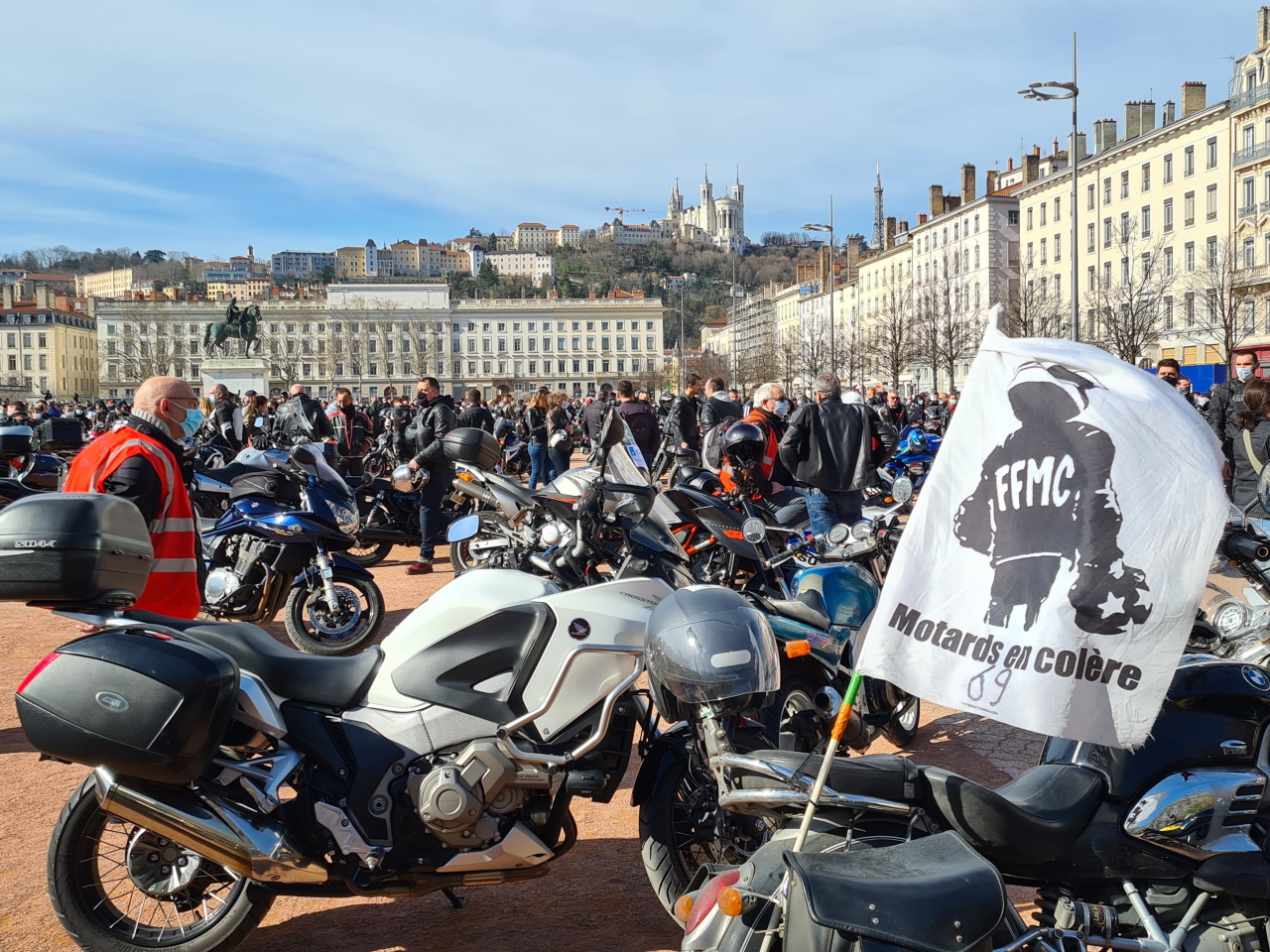 Ils sont nombreux à avoir répondu présent à l’appel de la Fédération française des motards en colère du Rhône (FFMC). Plus de 1000 motards ont envahi la place Bellecour ce samedi en début d’après-midi pour demander la légalisation de la circulation inter-files.