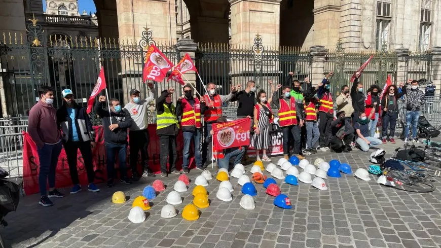 Environ une vingtaine de livreurs des plateformes (Uber Eats, Deliveroo,…) et de travailleurs du bâtiment ont répondu ç l’appel des syndicats pour dénoncer les trop nombreuses morts au travail. Le 18 mars dernier, un ouvrier décédait à Décines, enseveli dans une centrale à béton. Deux jours plus tard, un livreur Deliveroo était tué dans une collision avec une voiture à Villeurbanne. Deux incidents récents qui alimentent un compteur qui chiffre à près de 600 morts au travail chaque année.