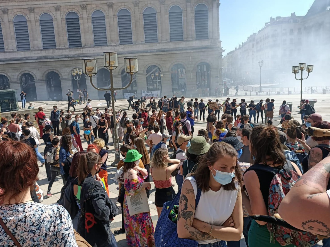 Le rassemblement a été perturbé par une cinquantaine d'individus, probablement d'extrême-droite, qui ont jeté des projectiles sur les manifestants. Les forces de l'ordre ont dû faire usage de gaz lacrymogènes. Des lignes de bus TCL ont été déviées.