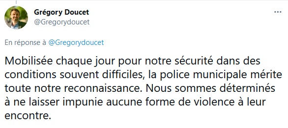 "Plein soutien aux 4 fonctionnaires de police blessés hier au cours d'une intervention et à leurs collègues. Je salue la rapidité et le professionnalisme des agents qui ont permis d'interpeller les auteurs de ces violences", a réagi le maire de Lyon, Grégory Doucet.