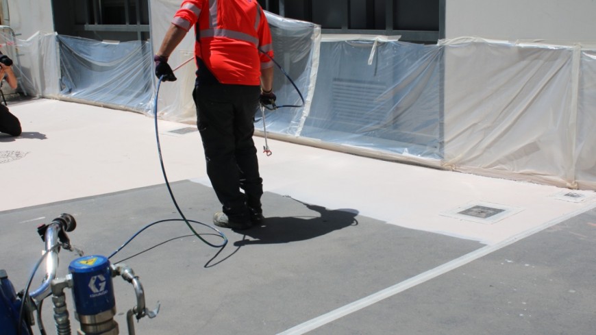 Baptisée "Climat'ROAD" ce nouveau revêtement est fait d'un mélange de microscopiques billes de céramique constituées de vide et intégrées dans une peinture à l'eau. Il permet de réduire de 10°C la température du sol où il est appliqué.