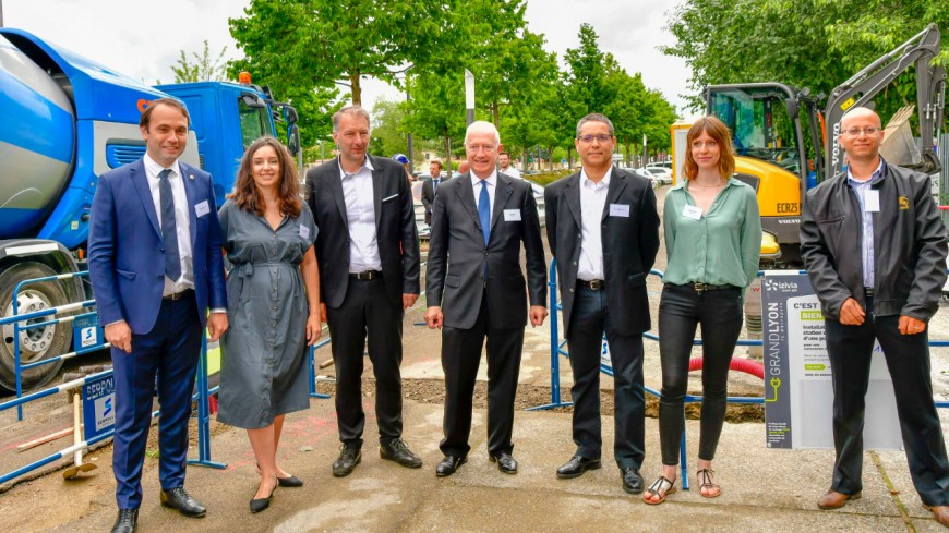 Et pourtant, c'est la prouesse réalisée à Bron. La mairie, associée à la Métropole de Lyon et à des industriels, a présenté ce jeudi l'expérimentation d'un chantier bas-carbone. En effet, l'installation sur l'esplanade Mitterrand de deux bornes de recharge Izivia, filiale du groupe EDF, pour véhicules électriques, se fait avec très peu d'émissions de gaz à effet de serre (un objectif de -27%), tout en appliquant les principes de l'économie circulaire et en respectant les niveaux sonores.