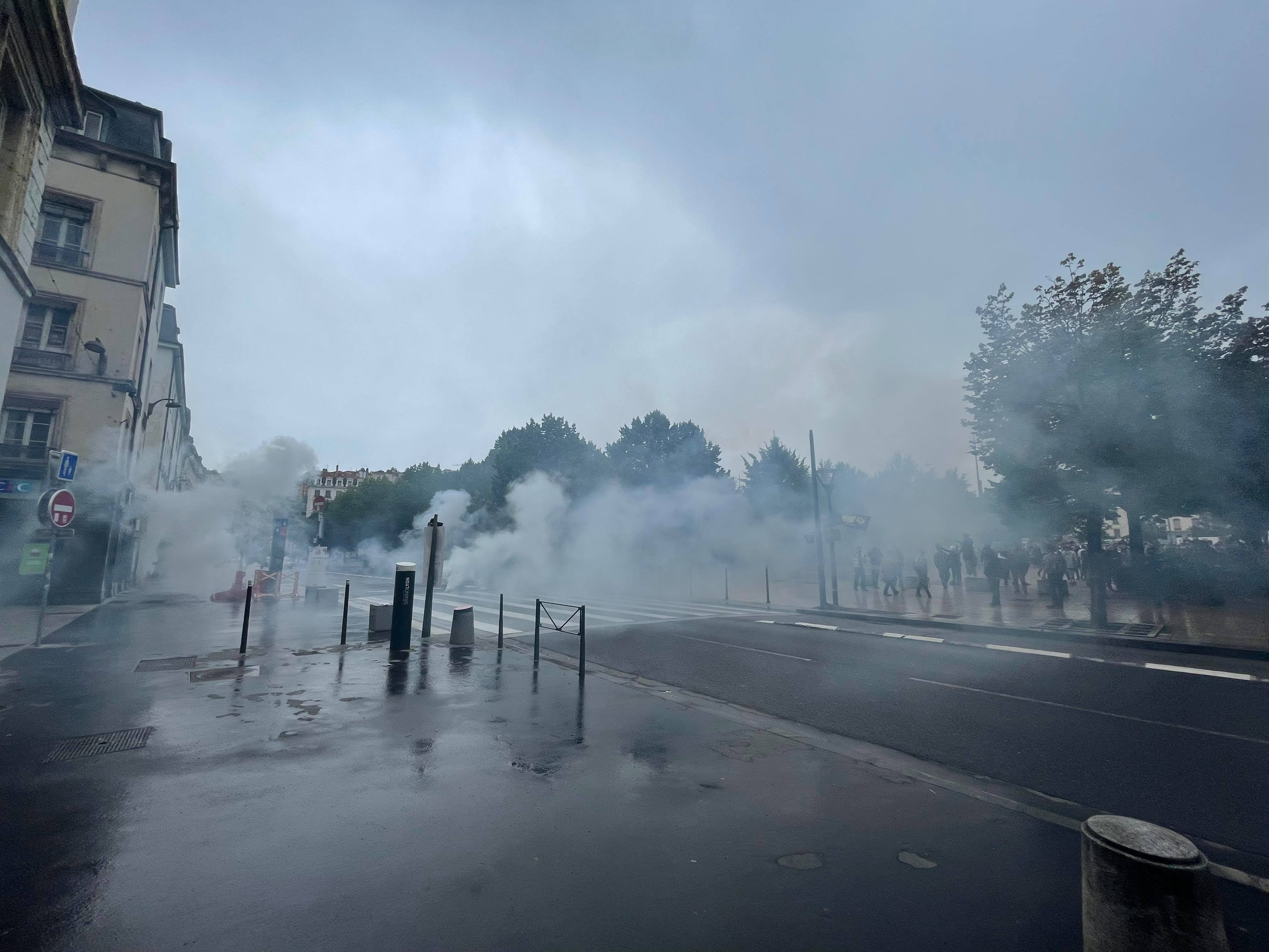 Le cortège a ensuite commencé à se disperser à l'arrivée sur la place Bellecour. C'est là que des affrontements ont éclaté aux alentours de 17h avec les forces de l'ordre qui ont fait usage de gaz lacrymogène dans les rues du centre-ville où résonnent des "Liberté, liberté !" ou encore "Macron dictateur". Quelques heurts avaient déjà été observés peu avant l'arrivée en Presqu'île.