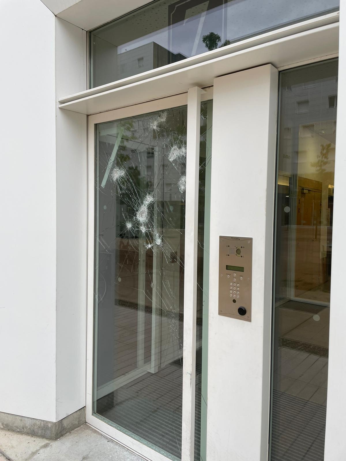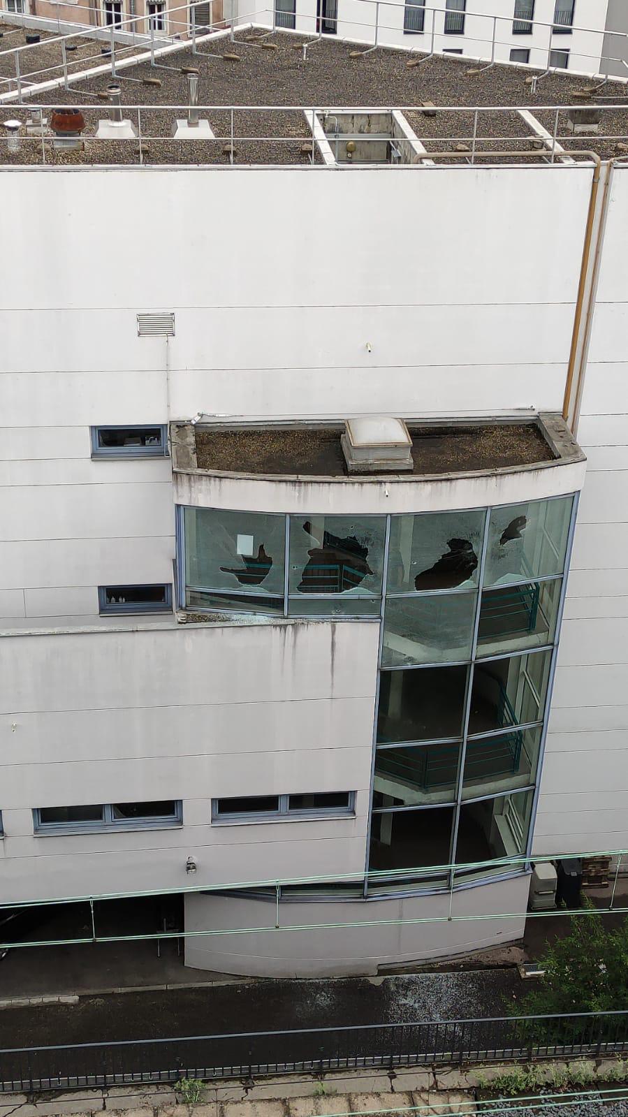 Les boules explosives n’ont pas fait de blessé, mais des marques de brûlures ont été relevées sur le bâtiment. Le groupe de casseurs ira même jusqu’à s’en prendre à la porte d’entrée du bâtiment, de nombreux impacts ont ainsi été relevés. D'autres projectiles ont aussi été envoyés contre la porte du bailleur social CDC Habitat, toujours sur la même place.