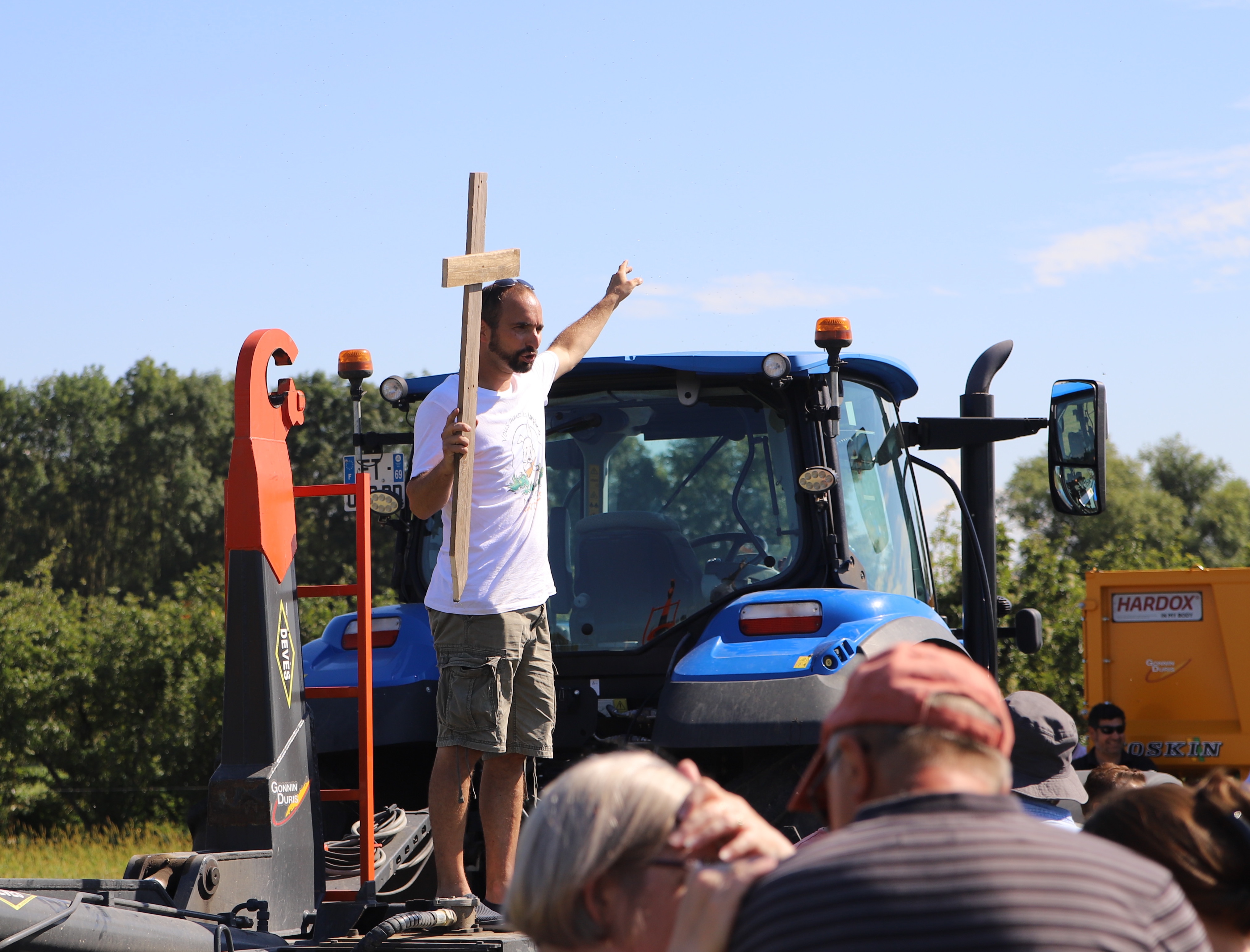 Sur place, les protestataires, et notamment les agriculteurs concernés, prennent successivement la parole pour dénoncer un désastre écologique et social.
