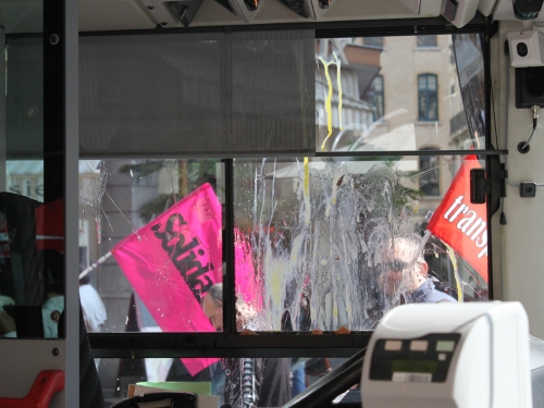Tout a débuté lundi matin, très tôt, dans tous les dépôts de bus de l’agglomération lyonnaise. Depuis le début de la grève, jeudi dernier, les salariés sont appelés à se présenter et à voter pour déterminer le taux de débrayage global sur tout le réseau. C’est le cas au dépôt de Perrache, où un conducteur de bus, gréviste et désemparé par rapport au mouvement avoue son désespoir et ses projets : "C’est invivable maintenant aux TCL. Etre conducteur, c’est un métier que j’aime bien, j’ai du plaisir à me lever le matin pour aller travailler. Mais après dix ans de boite et avec tout ce qui se passe, je pense vraiment à changer de métier après la grève. J’ai déjà quelques pistes dans le domaine de la santé." La vingtaine de ses collègues se sont ensuite rendus sur le dépôt de Vaulx-en-Velin/La Soie, où une centaine de grévistes bloquait depuis 6h du matin la sortie des bus, notamment des C3. Quelques véhicules ont pu sortir par une porte dérobée, mais ceux-ci ont été la cible de jets d’œufs à plusieurs reprises.