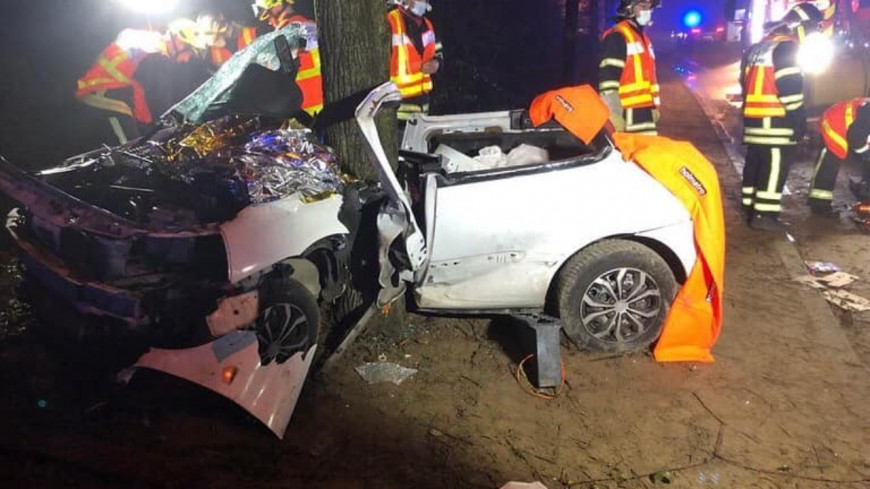 Tandis que la chaussée était glissante et que le brouillard réduisait énormément la visibilité, la voiture est sortie de la route pour percuter un arbre à pleine vitesse.